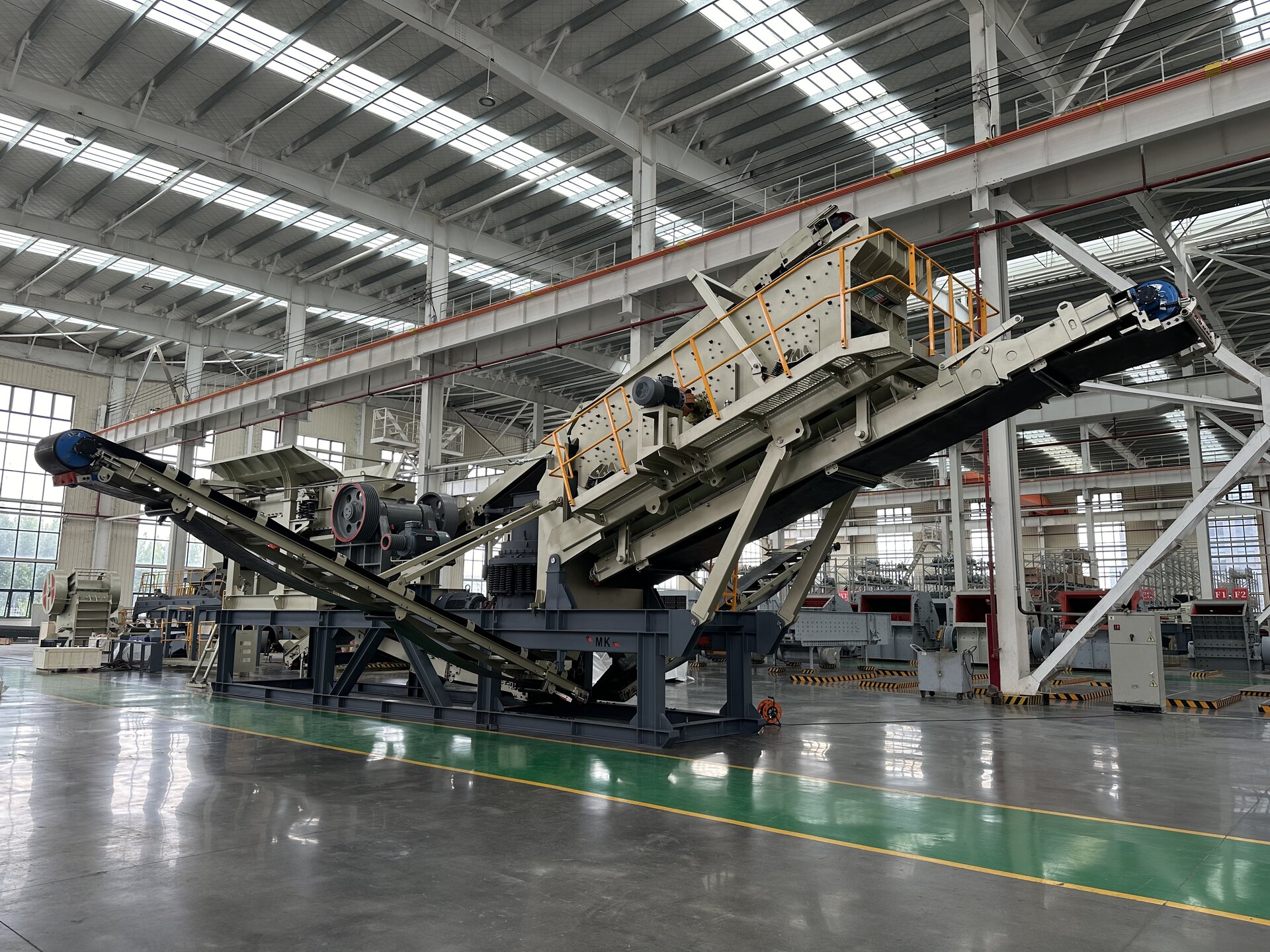 满足移动生产线的大产能需求:采用独特框架式底盘结构,可承载更大型号主机设备,单条生产线产能可达800吨/时,满足可移动式生产线的大产能需求及老生产线扩产升级需求。