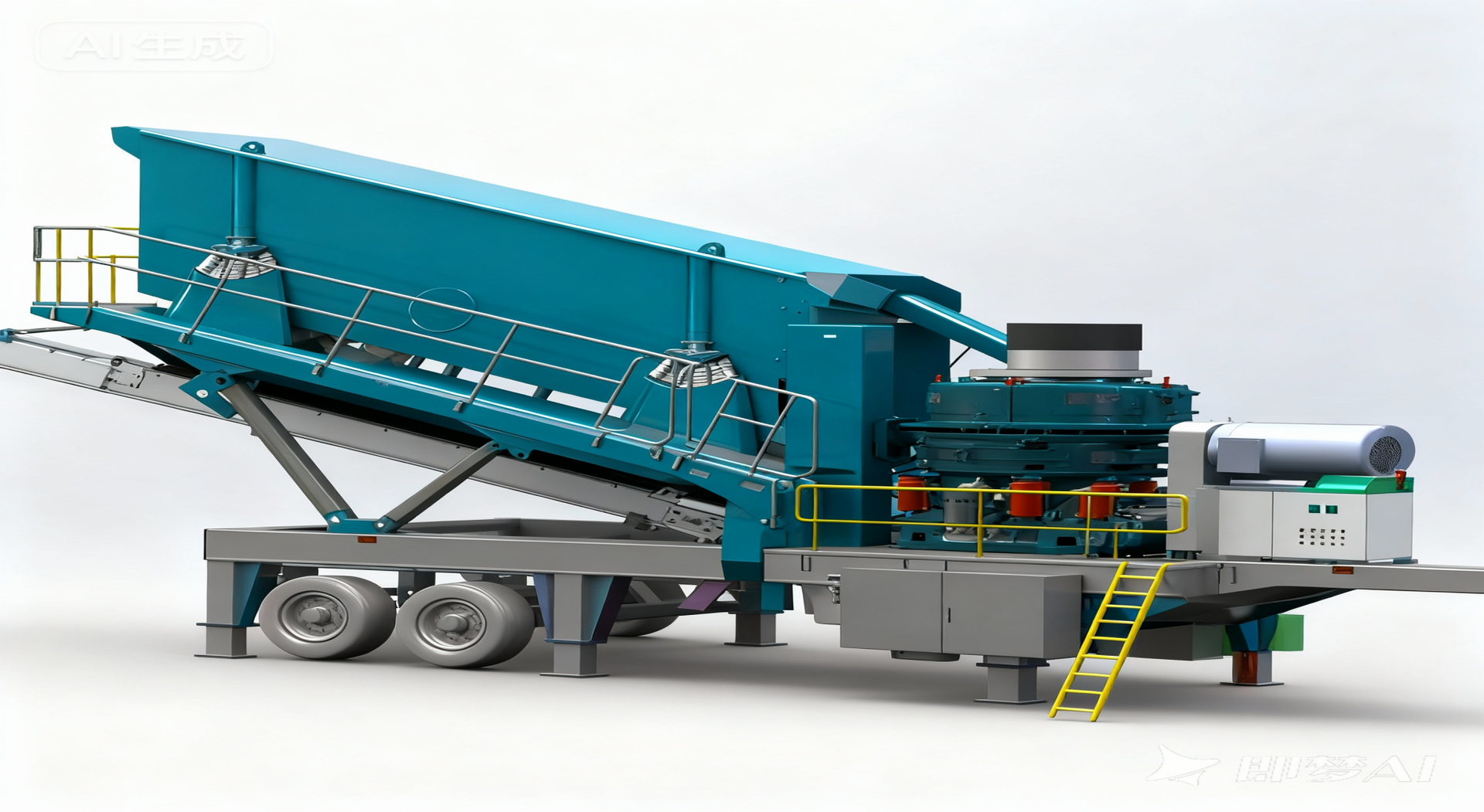 2. 大容积料仓设计:粗破装备喂料仓容积达8m³,中碎装备配置4.5m³中转料仓,实现持续不间断作业。