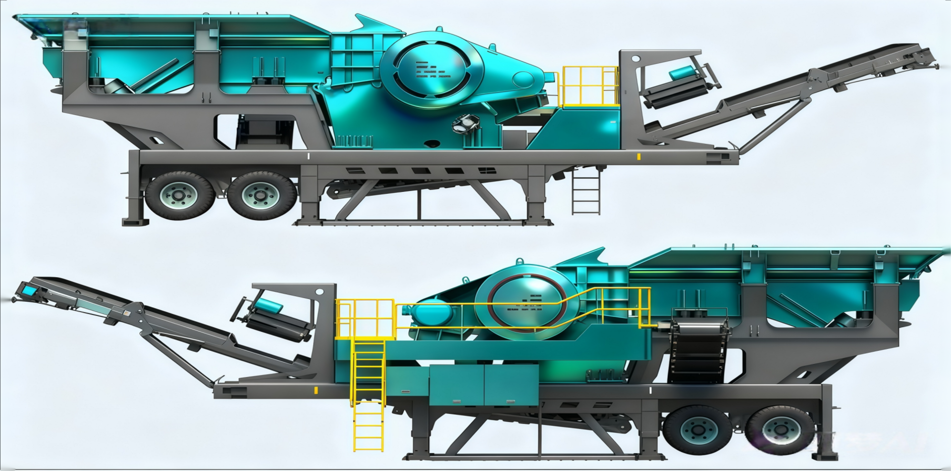 2. 大容积料仓设计:粗破装备喂料仓容积达8m³,中碎装备配置4.5m³中转料仓,实现持续不间断作业。